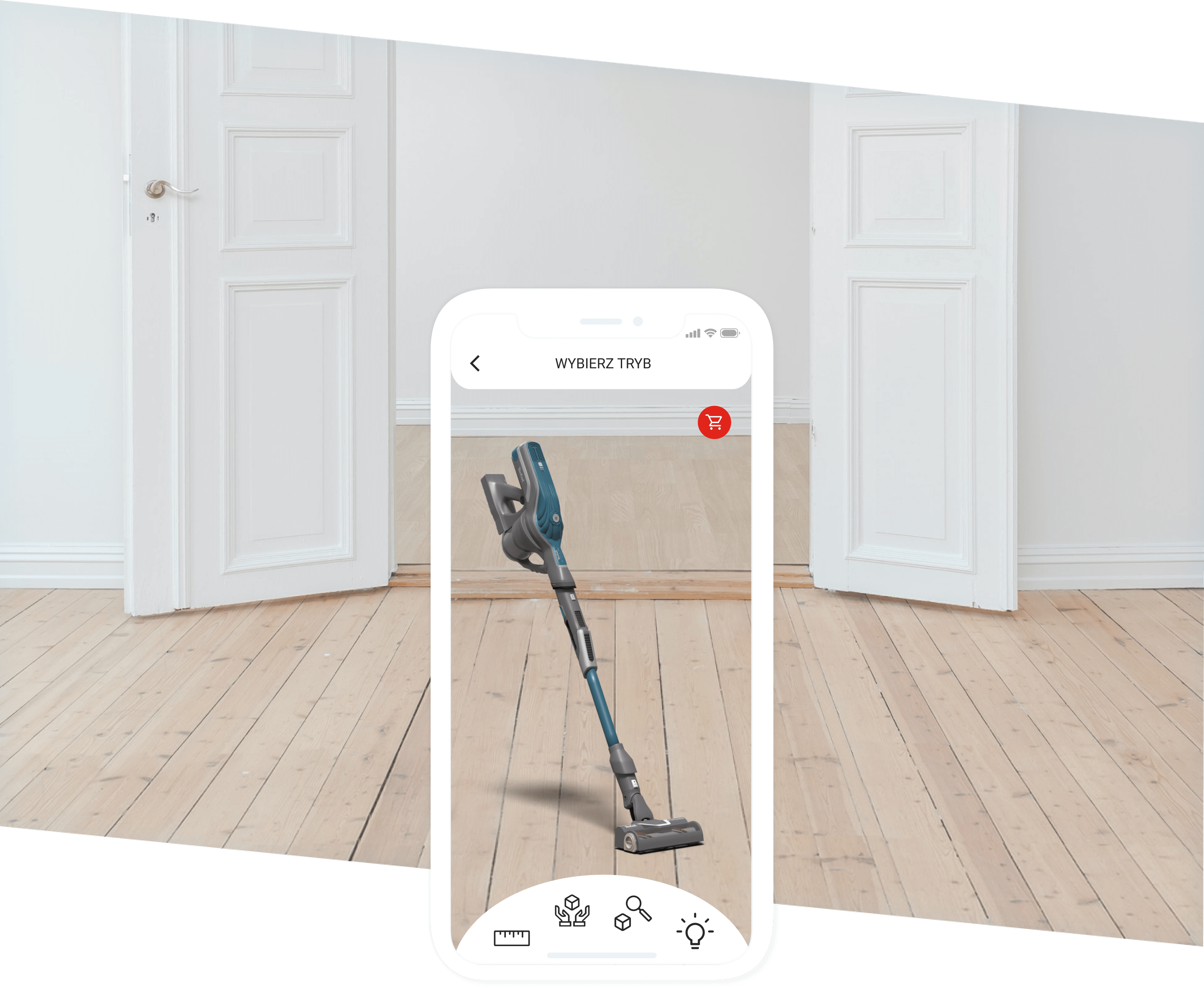 Odkryj swój idealny produkt. Umieść we własnym pomieszczeniu, przesuń i przymocuj do ściany.