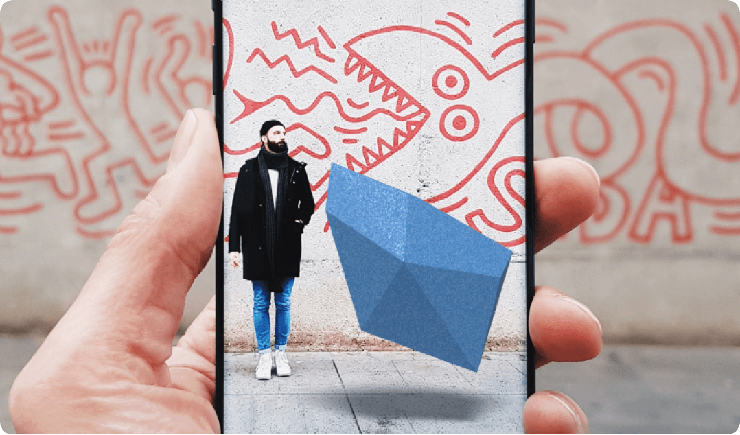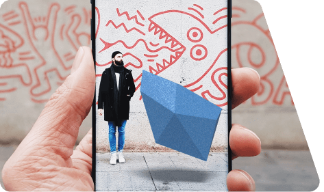 AR dodaje do otaczającego nas świata cyfrowe obiekty. Może to być angażujący filtr na twarz, prezentacja urządzenia do kupienia, gra lub przydatne informacje wyświetlane na rzeczywistym przedmiocie.